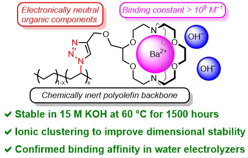 (24) Zhang, H.;# Wang, X.;# Wang, Y.;* Zhang, Y.; Zhang, W.;* You, W.* Alkaline-Stable Anion-Exchange Membranes with Barium [2.2.2]Cryptate Cations: The Importance of High Binding Constants. Angew. Chem. Int. Ed. 2023, e202217742.